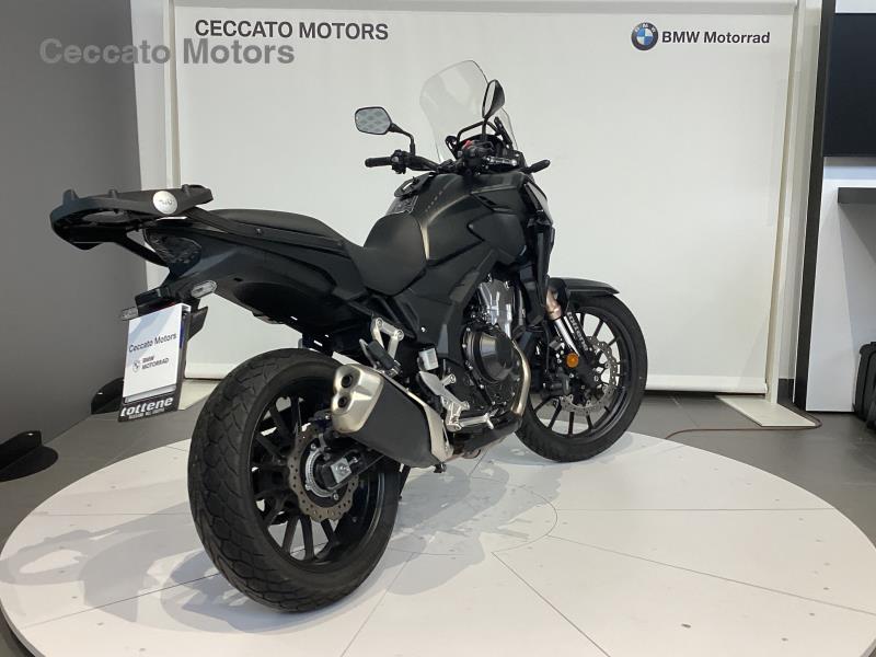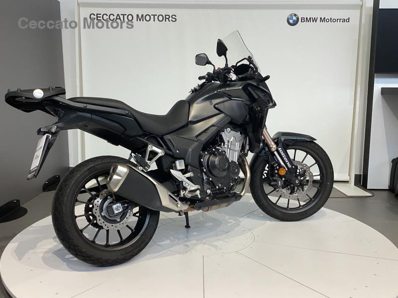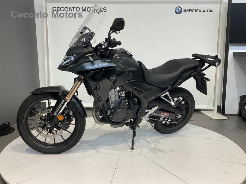 Moto visibile presso la sede di Padova. Possibilità di finanziamento personalizzato. La CB500X – crossover lanciata nel 2013 insieme alle sorelle CB500F (naked) e CBR500R (super sport) – si è subito dimostrata una ottima entry-level per i neofiti, ma anche una divertente adventure-bike per i motociclisti esperti. Il compatto motore bicilindrico parallelo offre livelli di potenza e coppia sfruttabili da chiunque, sia da chi è alle prime armi e cerca una moto facile e brillante con cui cominciare a divertirsi in moto, sia dai motociclisti esperti che, stanchi delle costose e impegnative maximoto, vogliono una adventure dai costi di gestione ridotti, efficiente nei consumi, agile, affidabile e, soprattutto, molto divertente. La posizione di guida comoda ed eretta, la notevole capacità del serbatoio e le sospensioni a lunga escursione donano grande piacere di guida su qualsiasi tragitto, rendendo la CB500X perfetta anche per l'uso quotidiano così come per le escursioni del fine settimana. In altre parole, è un modello versatile, in tutti i sensi. Nel 2016 è stata aggiornata con un serbatoio più capiente, un parabrezza più protettivo, i gruppi ottici a LED, la forcella regolabile nel precarico molle e la leva del freno anteriore regolabile. Nel 2017 ha guadagnato l’omologazione Euro4. Il 2019 è stato l'anno della massima evoluzione per la CB500X. Lo stile adventure diventò più sofisticato per sottolineare la versatilità del modello, il motore divenne più reattivo ai regimi bassi e medi, la robusta ciclistica guadagnò la ruota anteriore da 19” e l’equipaggiamento tecnico e funzionale si impreziosì con nuovi efficaci elementi. Nel 2021 arrivarono nuove grafiche e il telaietto reggisella verniciato in rosso, per donarle un tocco estetico che ricordasse l’Africa Twin, mentre l’omologazione si adeguò all’Euro5. Avendo conquistato migliaia di motociclisti in tutta Europa, conquistati dalla sua versatilità e facilità di guida, per il 2022 la CB500X si evolve tecnicamente e riceve una nuova forcella rovesciata Showa SFF-BP, un impianto frenante a doppio disco, un nuovo forcellone, una ruota anteriore ridisegnata, un nuovo radiatore, nuove mappature della centralina, un gruppo ottico anteriore più potente e ritocchi di stile compresi nuovi colori e nuove grafiche. Panoramica del modello Dal traffico cittadino alle gite del fine settimana, con un pizzico di sterrato, anche sulle lunghe percorrenze: la CB500X è pronta per qualsiasi utilizzo. Il look è snello e la posizione di guida dominante, grazie alle sospensioni con escursione maggiorata, al manubrio largo e dritto e alla ruota anteriore di 19”. Con una potenza massima di 48 CV (35 kW) per consentirne la guida con la patente A2, il motore ha fasatura delle valvole e condotti di aspirazione e scarico progettati per offrire una coppia e una potenza consistenti ai regimi bassi e medi. Il terminale di scarico a doppia uscita regala un sound dai toni cupi che sottolinea il carattere del bicilindrico, e la frizione è assistita con antisaltellamento. La strumentazione LCD a retroilluminazione negativa include la spia Shift?Up di cambiata e l’indicatore della marcia inserita. Gli indicatori di direzione sono a LED e con funzione di luci di posizione. Il parabrezza è ben esteso per una protezione aerodinamica efficace. Per il 2022 la CB500X riceve una nuova forcella rovesciata Showa SFF-BP con steli di 41 mm, un impianto frenante a doppio disco da 296 mm, un nuovo forcellone, una ruota anteriore ridisegnata, un nuovo radiatore, nuove mappature della centralina, un gruppo ottico anteriore più potente. Il peso è invariato ma con una distribuzione leggermente più caricata sull’anteriore. In Italia per il 2022 la CB500X è disponibile nelle seguenti colorazioni: Grand Prix Red Matt Gunpowder Black Metallic Pearl Organic Green Caratteristiche principali 3.1 Stile e telaio Nuova forcella rovesciata Showa SFF-BP con steli di 41 mm Nuovo impianto frenante con dischi da 296 mm e pinze a 2 pistoncini Nuovo cerchio anteriore alleggerito Nuovo forcellone con ammortizzatore dotato di nuova taratura Luci full-LED con faro più potente e indicatori di direzione con funzione di luci di posizione Look adventure deciso con ruota anteriore da 19” Manubrio biconico ed ottimo angolo di sterzo Sospensioni ad escursione maggiorata Display LCD con spia Shift-Up di cambiata e indicatore marcia inserita. Il telaio tubolare in acciaio (tubi da 35 mm di diametro) con struttura a diamante, leggero e resistente, è invariato nel layout ed è calibrato per offrire un'ottima risposta su tutti i percorsi, anche sterrati. La forma e la posizione dei punti di ancoraggio del motore e la rigidità della struttura contribuiscono a ridurre le vibrazioni. Appena alla guida si avverte subito la presenza di un avantreno tutto nuovo. Con l’obiettivo di aumentare l’efficacia della risposta sulle asperità più pronunciate, la precedente forcella telescopica è stata sostituita da una forcella rovesciata Showa SFF-BP (Separate Function Fork Big Piston) di 41 mm, con escursione ruota di 135 mm (corsa di 150 mm) ancorata a nuove piastre di sterzo. Il punto di forza di questa forcella è la divisione delle funzioni di smorzamento idraulico e molleggio, una per gambo, che rende le reazioni più neutrali e migliora la qualità della guida. L’ammortizzatore a tubo singolo (tipico delle moto adventure di cilindrata superiore) con pistone di grande diametro garantisce comfort e stabilità eccellenti. Dotato di regolazione del precarico molla su 5 posizioni, è fissato al forcellone con leveraggio Pro-Link ed ha una taratura rivisitata per accordarsi perfettamente alla nuova forcella. L’escursione ruota è di 135 mm (corsa del pistone 60 mm). Anche il nuovo forcellone è più leggero; ha ora pareti da 2mm di spessore (invece dei 2,3 precedenti) ed impiega un elemento trasversale scatolato a cui è fissato un nuovo carterino paracatena. Più rigido in se