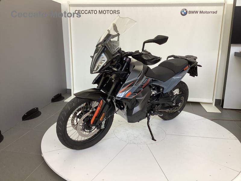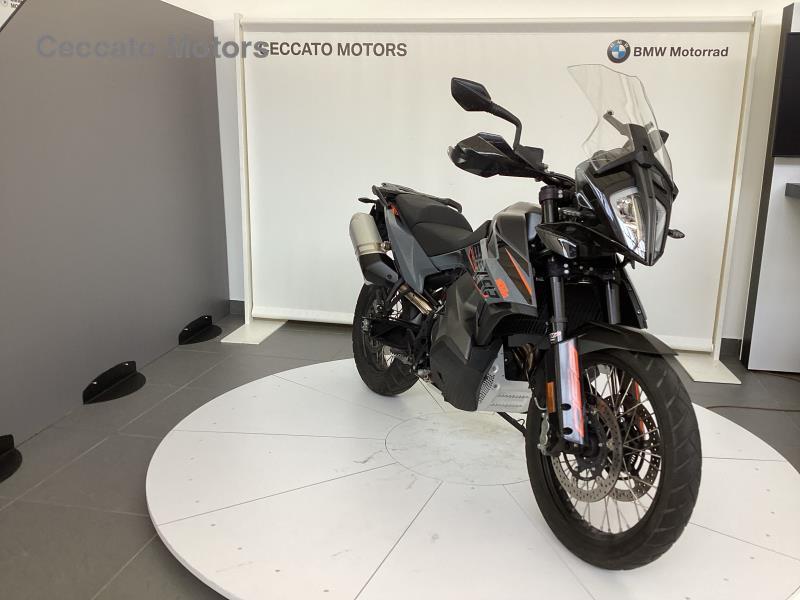 Moto visibile presso la sede di Padova. Possibilità di finanziamento personalizzato. Andare dal punto A al punto B in modo sicuro, veloce ed efficiente è sempre stato importante, ma poterlo fare con una buona dose di adrenalina è ancora più divertente. La KTM 890 ADVENTURE è la scelta ideale, grazie alla sua potenza, alla sua versatilità e le sue grandi doti ciclistiche. La KTM 890 ADVENTURE è la naturale evoluzione della KTM 790 ADVENTURE. La moto è equipaggiata con il nuovo motore LC8c da 889 cm³ che incrementa le prestazioni a 105 CV e 100 Nm di coppia, mentre l’albero motore con il 20% in più di masse rotanti regala migliori sensazioni a bassi regimi e incrementa la centralizzazione delle masse e la trazione in curva. La KTM 890 ADVENTURE è dotata di una frizione perfezionata e più robusta per far fronte all’incremento delle prestazioni. Il nuovo motore è conforme agli standard Euro5. Le sospensioni WP APEX offrono un’escursione di 200mm e garantiscono un comportamento dinamico all’altezza del DNA della moto. Il monoammortizzatore è dotato di un nuovo registro dello smorzamento in estensione e di un pratico pomello per regolare il precarico della molla, a tutto vantaggio della massima stabilità della moto, sia sull’asfalto che in fuoristrada. L’ergonomia della KTM 890 ADVENTURE è ispirata alle moto che corrono nei Rally, con il serbatoio da 20 litri stretto tra le gambe che si sviluppa verso il basso. La moto risulta snella, leggera e maneggevole, con la sella accessibile alla maggior parte dei piloti. La nuova KTM 890 ADVENTURE è dotata di un display TFT interfacciabile con lo smartphone per gestire la propria playlist e le telefonate in ingresso e grazie all’app KTM MY RIDE è possibile navigare punto per punto. Il nuovo telaietto posteriore è più leggero e robusto, per sostenere il passeggero e il bagaglio. La moto è dotata di un ricco pacchetto elettronico: cornering ABS sensibile all'angolo di piega, 3 mappe per regolare il Cornering Traction Control (in più è disponibile la modalità Rally opzionale) e regolazione della coppia del motore in fase di rilascio (anche questo opzionale). Numerose le KTM PowerParts disponibili, tra le quali spiccano il Cruise Control (con l’interruttore a manubrio ora di serie), il Quickshifter+ (con impostazioni ottimizzate), la sella e le manopole riscaldate e le numerose combinazioni di valige laterali e borse da serbatoio. KTM 890 ADVENTURE - CARATTERISTICHE PRINCIPALI DEL MODELLO // Nuovo motore con ulteriori 90 cm³ di cilindrata // Prestazioni migliorate con 105 CV e 100 Nm (Euro 5) // Migliore guidabilità grazie al 20% in più di masse rotanti // Frizione più robusta adattata alle prestazioni potenziate // Sistema di controllo del battito in testa (in caso di uso di carburante a basso numero di ottani) // Componenti WP Suspension di elevata qualità e nuovo ammortizzatore // Freni anteriori e posteriori rinnovati per un maggiore controllo // Impostazioni migliorate per ABS e controllo della trazione // Mozzi delle ruote anodizzati anziché verniciati a polvere // Interruttore a manubrio del Cruise Control (software aggiuntivo) // Peso ottimale grazie a motore e serbatoio compatti // Profilo snello, ergonomia perfezionata e nuove grafiche // Adatta ai viaggi, con sella in due parti (regolabile per il pilota) e parafango ribassato // Connettività smartphone per gestire musica e telefonate // App opzionale KTM MY RIDE per la navigazione turn-by-turn